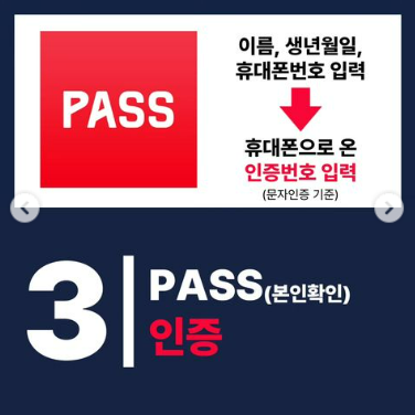 다음 스텝으로는 본인확인을 위한 PASS 또는 문자를 이용한 인증을 하시면 됩니다.