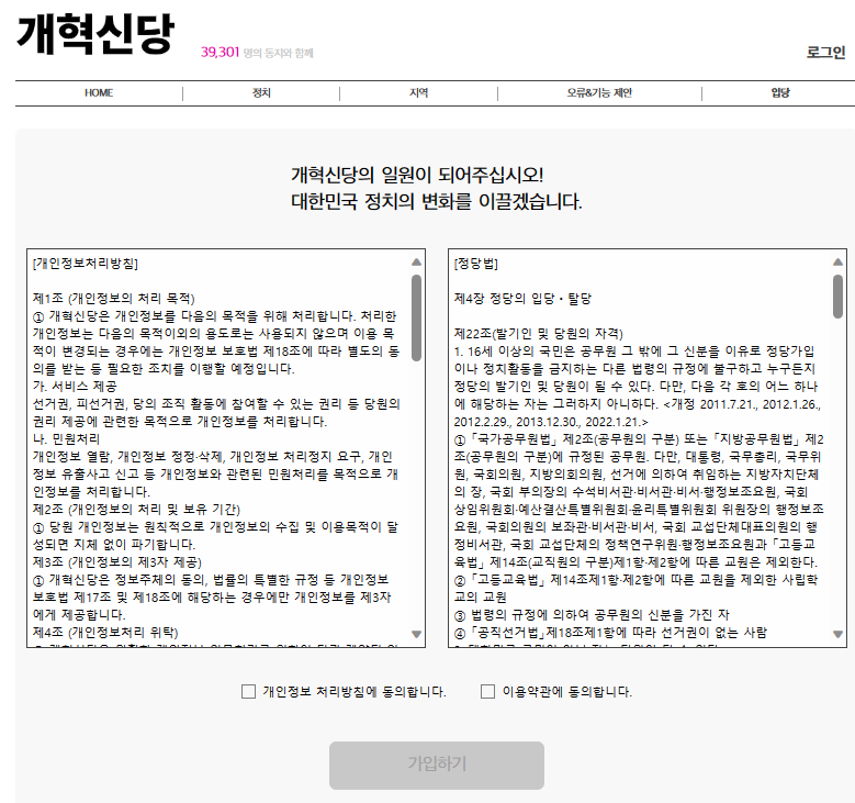 이준석이 창당한 개혁신당은 당비 납부가 필요없이 가입이 바로 가능하다고 하니 참고하시면 됩니다. 이러시면 가입이 끝납니다.