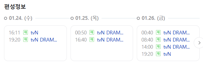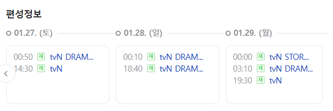 본방을 놓쳐서 아쉬워하는 분들이 많으시리라 생각됩니다. 8회 재방송은 아래의 편성정보를 확인하시면 됩니다. 8회 다시보기는 티빙에서도 가능하니 잊지말아주세요