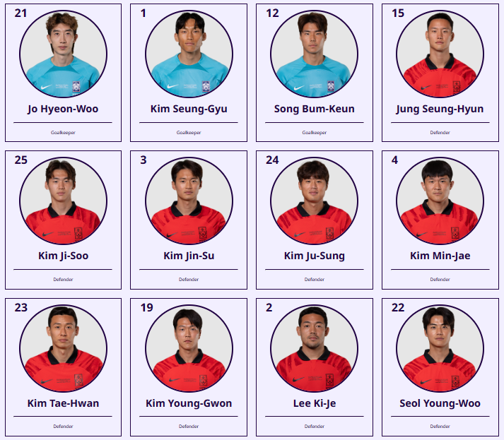 감독 위르겐 클린스만이 이끄는 대한민국 축구 대표팀 명단입니다.