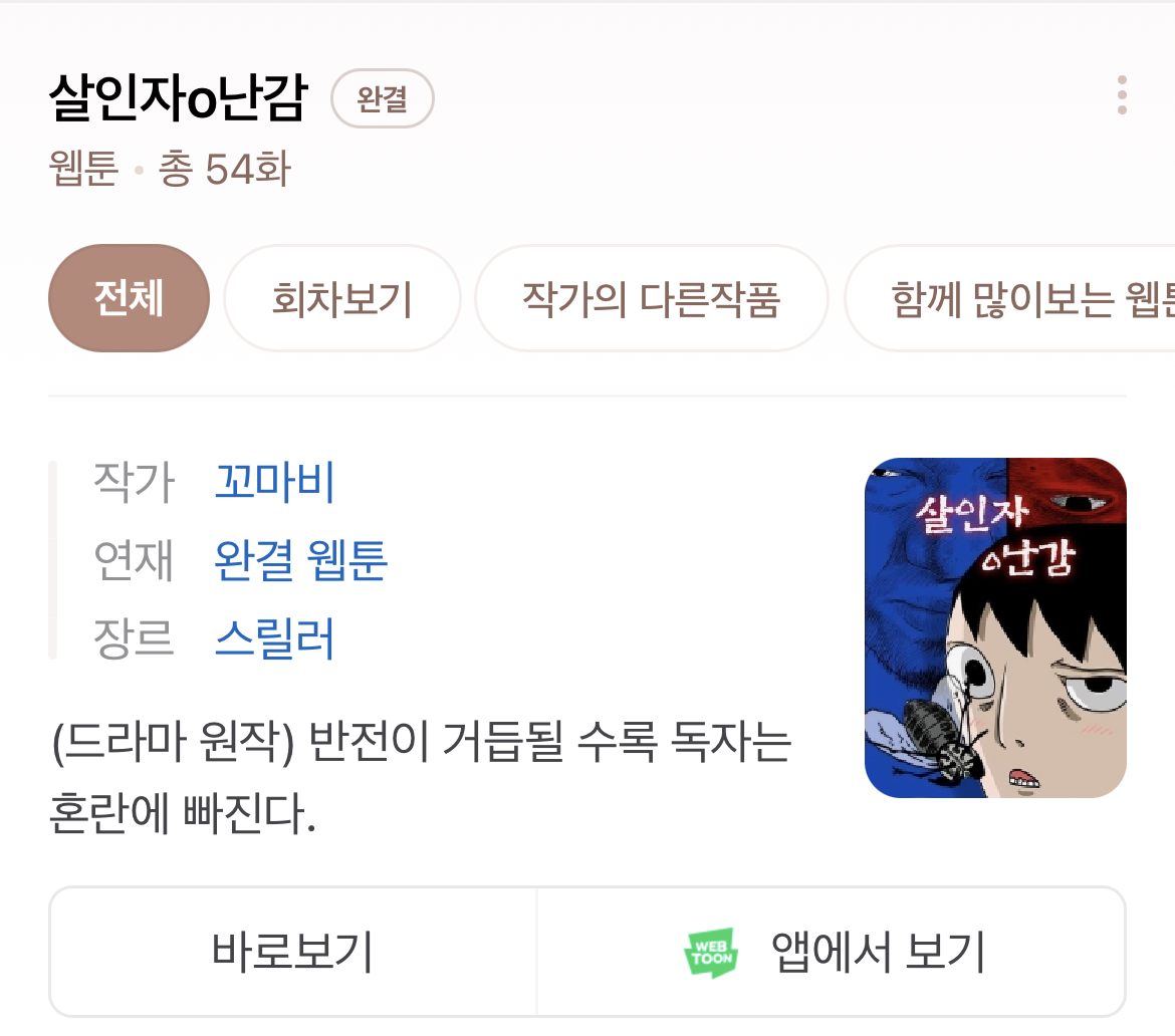 살인자 o난감 웹툰 원작 몇부작