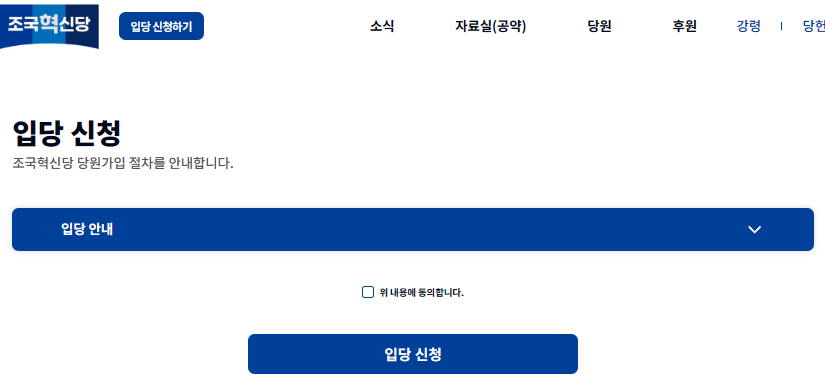 조국혁신당 가입 당원 입당 신청 홈페이지