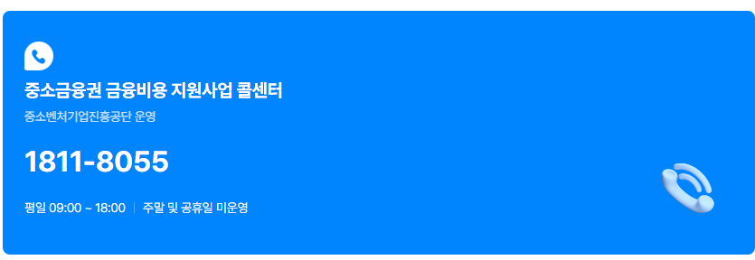 - 중소벤처기업진흥공단의 콜센터 : 1811-8055