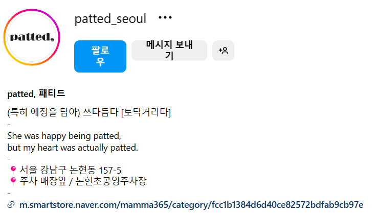 서론이 길었습니다. 이번 방송에서 강아지 티그와 함께 방문한 펫다이닝 식당! 식당 이름은 바로 패티드 라고 합니다. 식당 위치는 강남구 강남대로에 위치해있으며, 이미 반려견을 키우시는 분들에게는 강아지음식 레스토랑, 펫다이닝 식당으로 유명하다고 합니다.