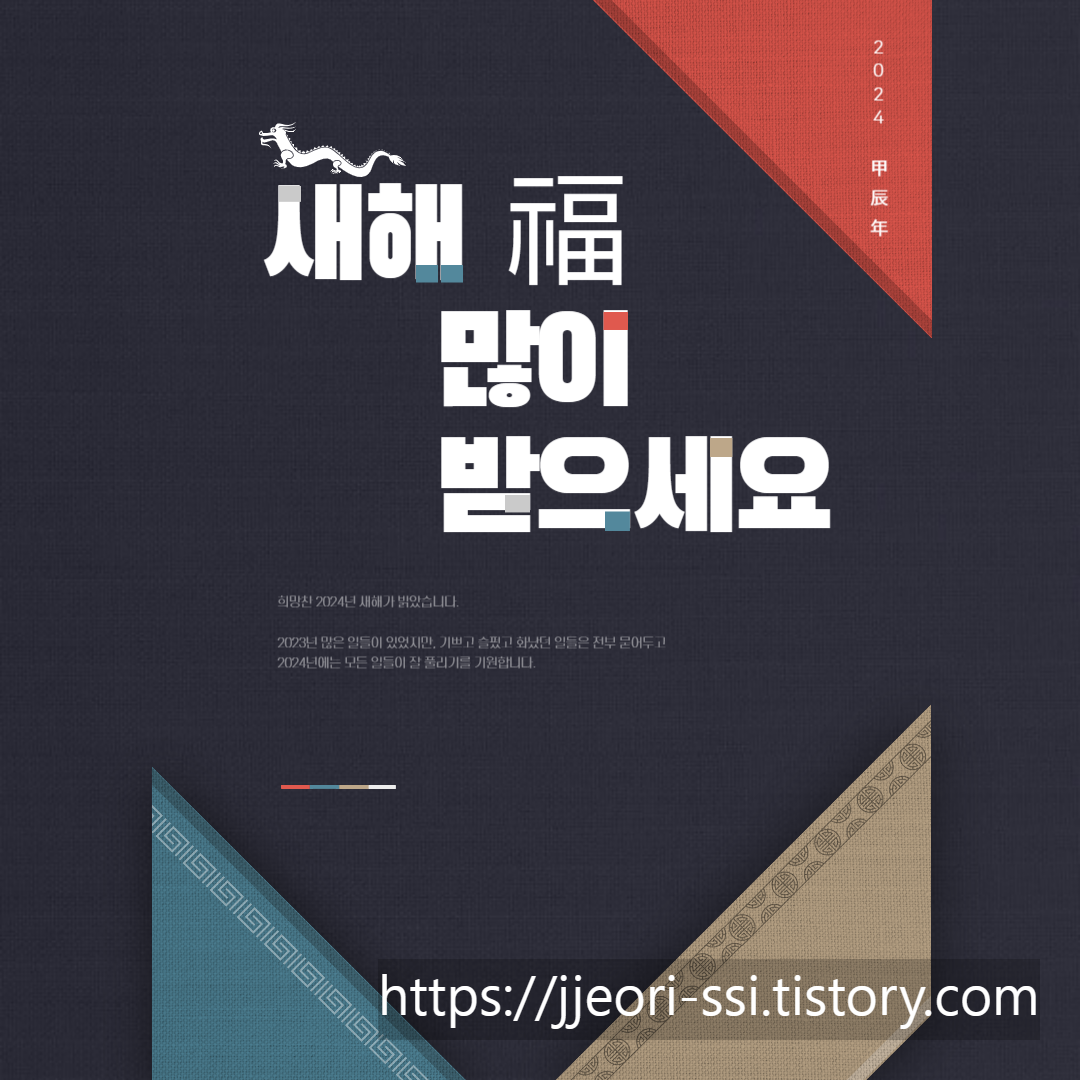 2023년 한 해 많은일들이 있었지만, 그래도 꿋꿋하게 버텨서 2023년의 끝을 맞이해가고 있습니다. 2024년 갑진년을 맞이하면서 새해 인사를 재치있는 이미지나 카드로 지인들에게 보내주면 재미있는 새해가 되지 않을까 싶습니다. 새해 인사는 별거아니면서도 행복을 기원하는 의미가 담겨있기에 그동안 고생했던 지인 가족 동료들에게 이미지와 함께 새해 인사를 해보시는게 어떨까요?