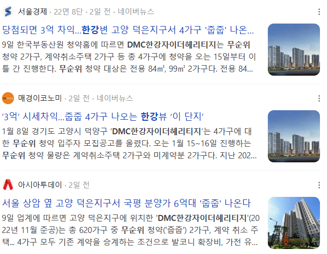 당첨되면 약 3억 원 정도의 차익을 가져갈 수 있다고 현재 많은 관심이 쏠리고 있는 곳이 바로 DMC한강자이더헤리티지 아파트입니다. 부동산 시장의 하락세가 지난해 초와 닮은듯한데, 서울권에서 현재 줍줍이나 무순위로 들어갈 수 있는 아파트를 찾는 분들에게 마른땅에 단비와도 같은 소식이 나왔습니다.