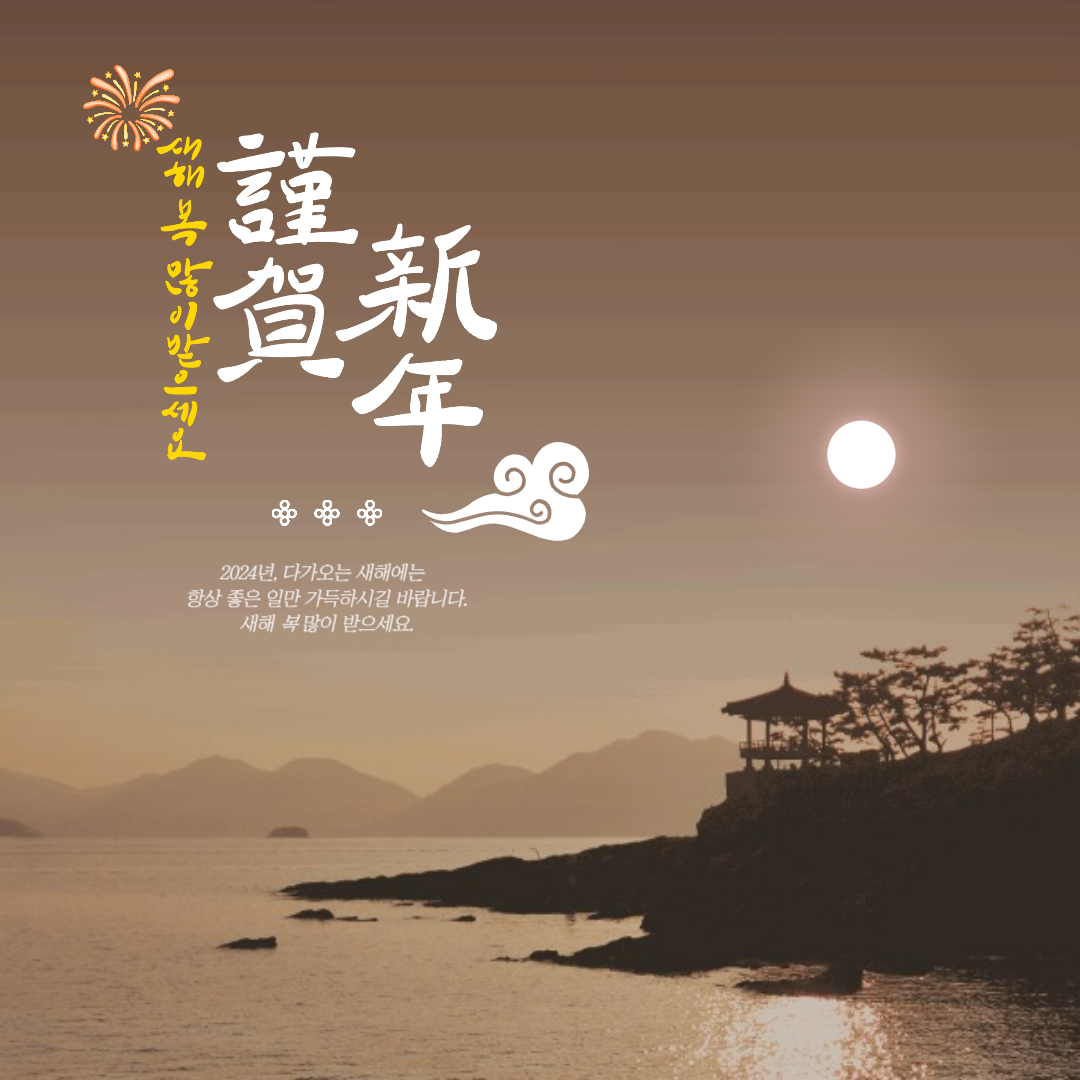-2024 갑진년 근하신년 새해 복 많이 받으세요. 새롭게 밝아오는 갑진년에도 더 좋은 일만 가득하시길 바라며, 하시는 일마다 행운이 함께하길 기원합니다.