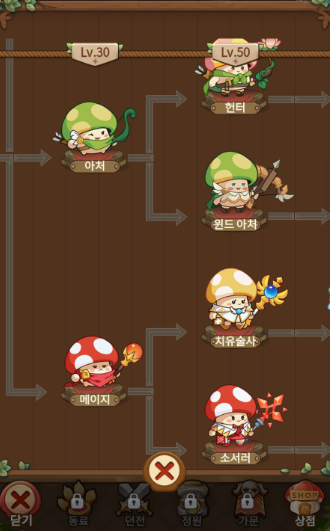 획득한 골드로는 램프를 업그레이드하여 더욱 좋은 장비를 소환할 수 있는 확률을 높여주는데요. 여러가지 전직을 통해 개성있는 각종 버섯커의 모습으로 성장이 가능하여 보는 재미, 육성 재미가 있습니다.