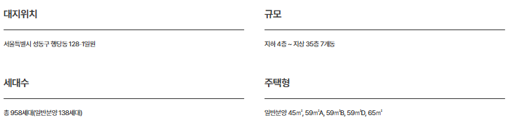 세대수 : 총 958 세대 中 일반 분양 138세대 (일반 공급 73세대, 특별공급 65세대)
