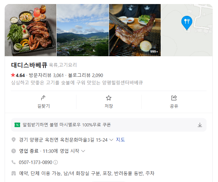 현재 양평 스테이크로 검색하여도 나올 정도로 아주 맛집으로 알려진 곳입니다. 연말이나 특별한 날에 연인이나 가족들과 함께 대디스바베큐를 방문해 보시는게 어떨까요?